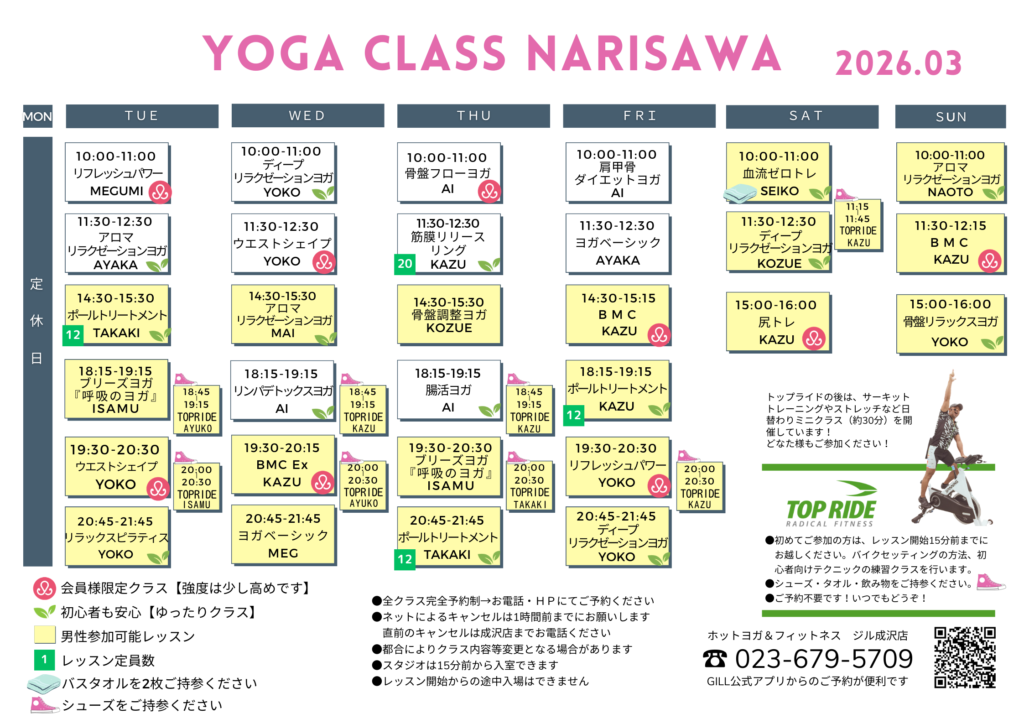 GILL成沢店3月スケジュールのPDFはこちらGILL成沢店3月スケジュール裏のPDFはこちら