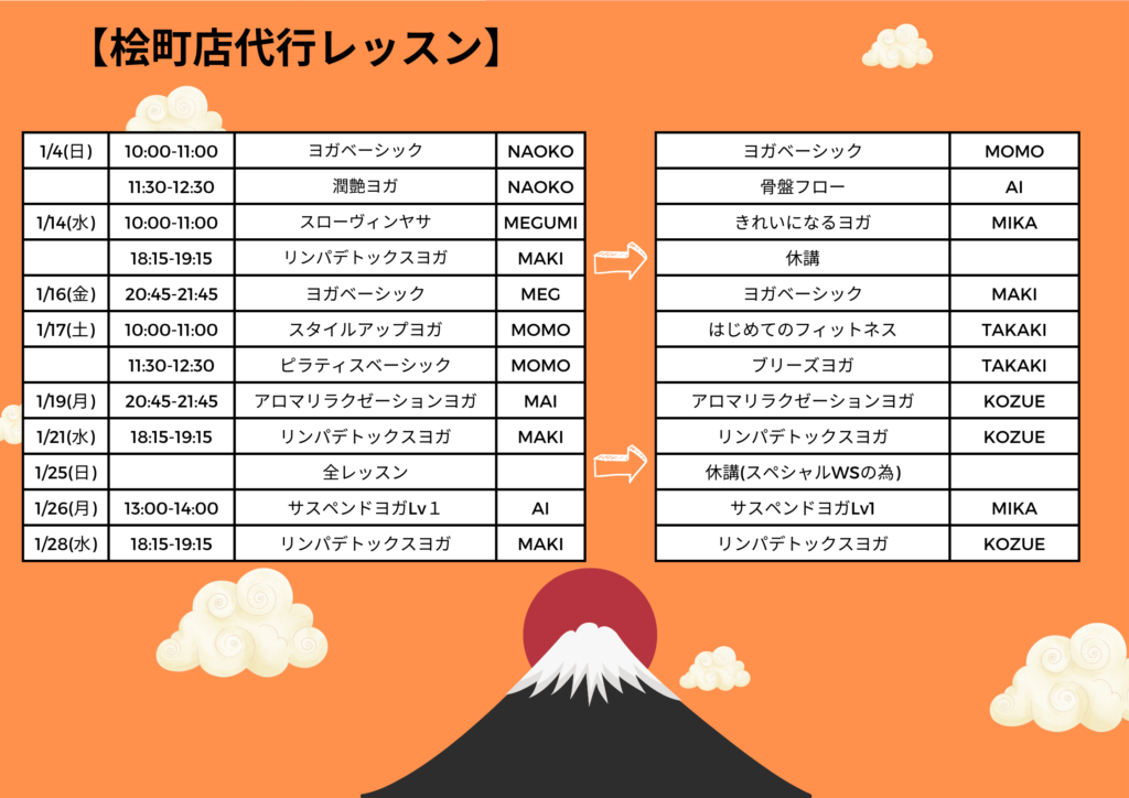 1月代行レッスンのお知らせ